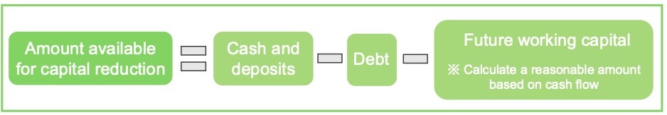 Based on our practical experience, the condition for capital reduction that “all debts and financial obligations can be fully performed” can be represented by the following formula, and we interpret this as the maximum allowable amount of capital reduction.