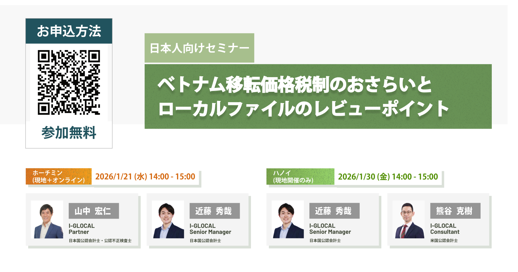 • 日本人向けセミナー 1/21(水)1/30(金)「ベトナム移転価格税制のおさらいとローカルファイルのレビューポイント」